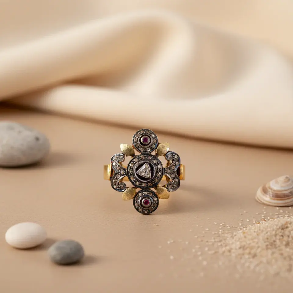 แหวนเพชรพลอยทับทิมสำหรับผู้หญิง ลายเรขาคณิต ประดับเพชรทรงรี ชุบแพลตตินัม โรเดียม ทอง เงิน ลายฉลุ