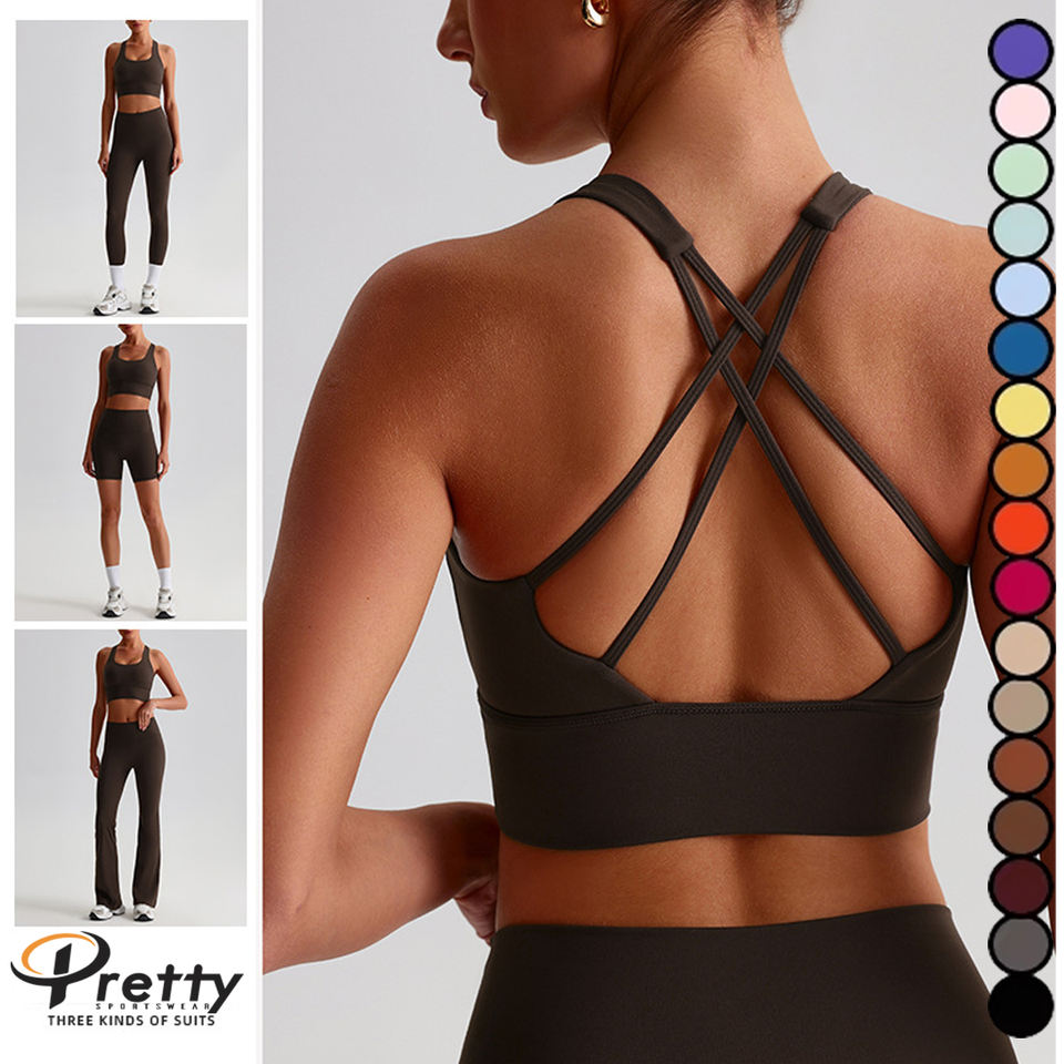 เสื้อชั้นในออกกำลังกายสำหรับผู้หญิงแบบมีฟองน้ำ ด้านหลังเปิดไขว้ สายไขว้หลัง สีนู้ด สำหรับโยคะ ชุดโยคะ เสื้อชั้นในโยคะแบบไขว้หลัง เสื้อผ้าออกกำลังกาย เสื้อสำหรับออกกำลังกาย