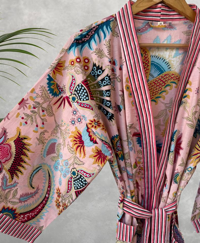 ชุดคลุมอาบน้ำผ้าฝ้ายลายดอกไม้คลาสสิกสำหรับผู้หญิง ODM เนื้อผ้านุ่ม ระบายอากาศได้ดี แขนยาว ความยาวระดับเข่า ชุดลำลอง