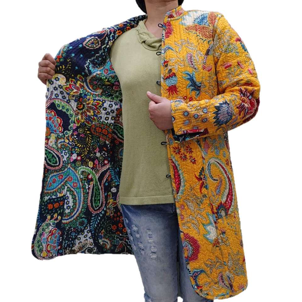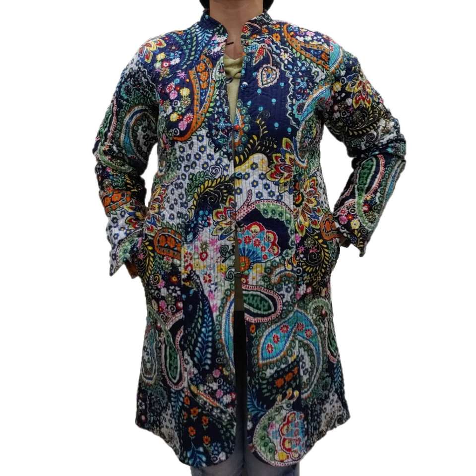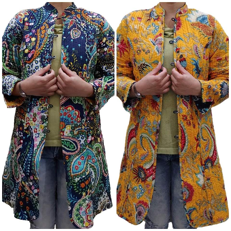 Jaipuri เสื้อแจ็คเก็ตแขนยาวผ้าฝ้ายพิมพ์ลายดอกไม้สำหรับผู้หญิงใส่กลับด้านได้