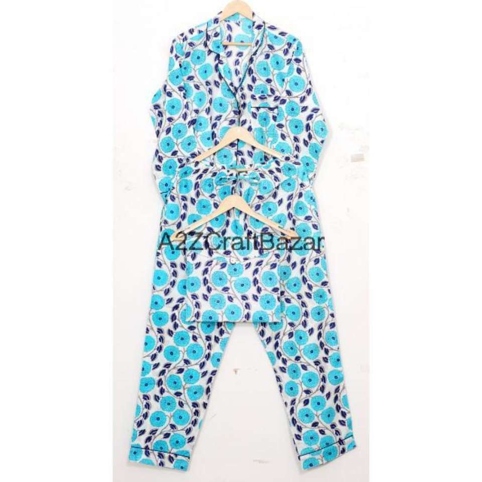Women's Floral Pattern 100% Cotton Soft Breathable Pajama Set with Elastic Waist Full Length Sleeves