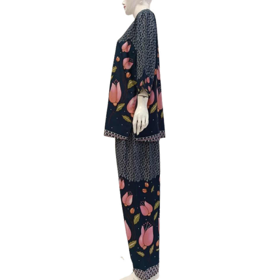 ชุดนอนผ้าเรยอนลายดอกไม้สำหรับผู้หญิง ย้อมสีแบบ Garment Dyed เนื้อผ้านุ่ม แขนสั้น กางเกงขาสั้น ใส่สบาย ใช้ได้ทุกวัน แบรนด์ Cherry