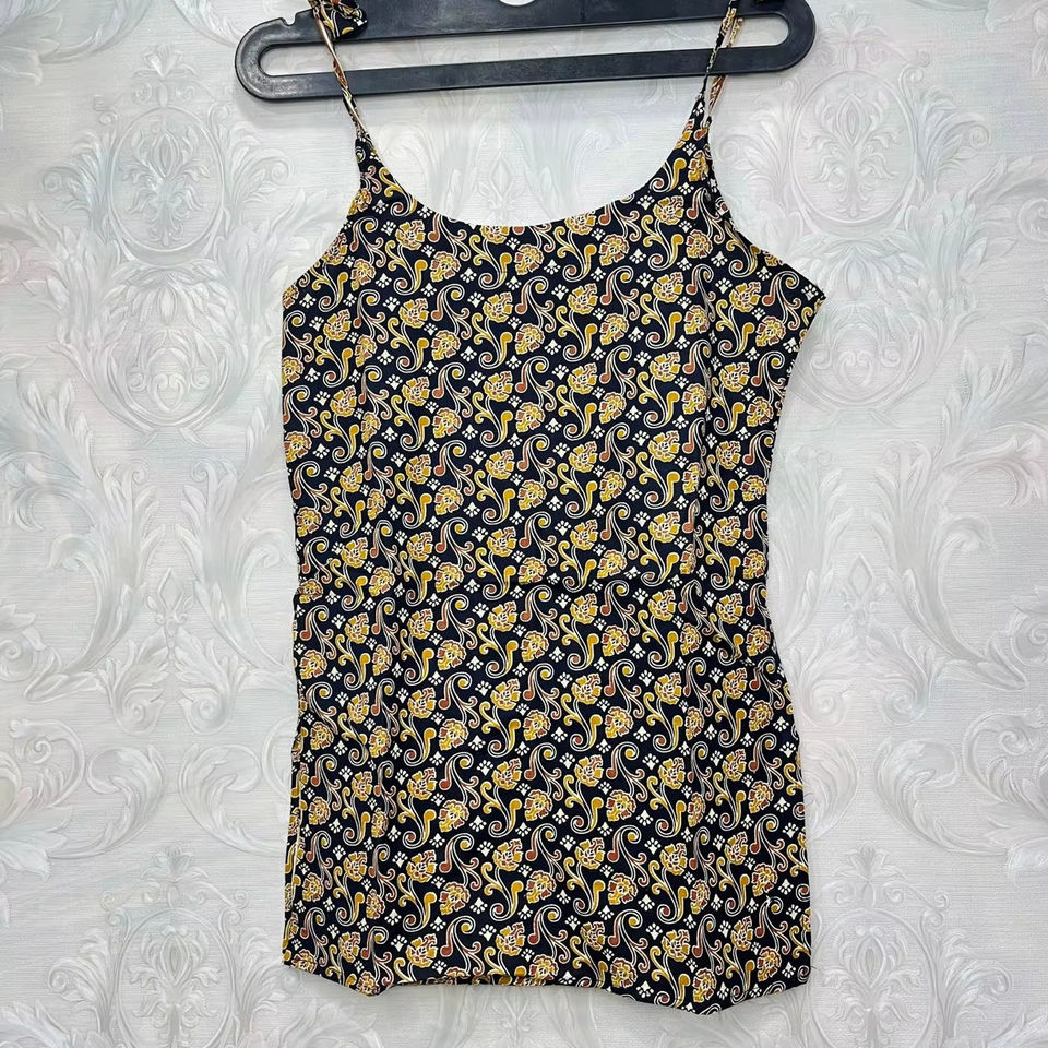 เสื้อแขนกุดทรงเอไลน์พิมพ์ลายดอกไม้สำหรับผู้หญิงผ้าฝ้ายปักลายดอกไม้ความยาวสั้นแบบปกติสีดำและสีเหลือง