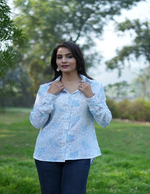 เสื้อเชิ้ตโอเวอร์ไซส์ลายดอกไม้สำหรับผู้หญิง เสื้อลำลองฤดูร้อนแขนยาวพร้อมดีเทลปลายแขนพับ ผ้าระบายอากาศเพื่อความสบายในชีวิตประจำวัน