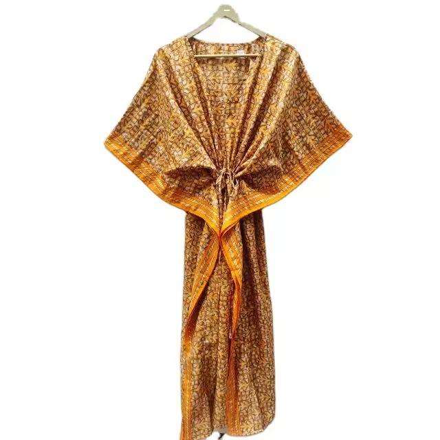 ชุดเดรสผ้าไหมพิมพ์ลายดอกไม้สำหรับผู้หญิง ทรงหลวม ใช้เป็นชุดคลุมชุดว่ายน้ำ รุ่น ETH-243 โดย Ethnic Craft Hub India