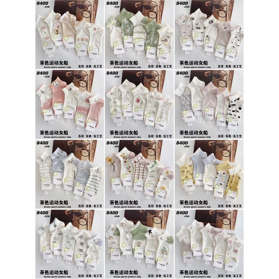 Women's Floral Printed Ankle-Length Socks Breathable Nylon Spandex Knitted with Mesh for Spring Summer Packaged Individual Bags