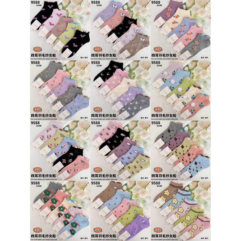 Women's Floral Printed Ankle-Length Socks Breathable Nylon Spandex Knitted with Mesh for Spring Summer Packaged Individual Bags