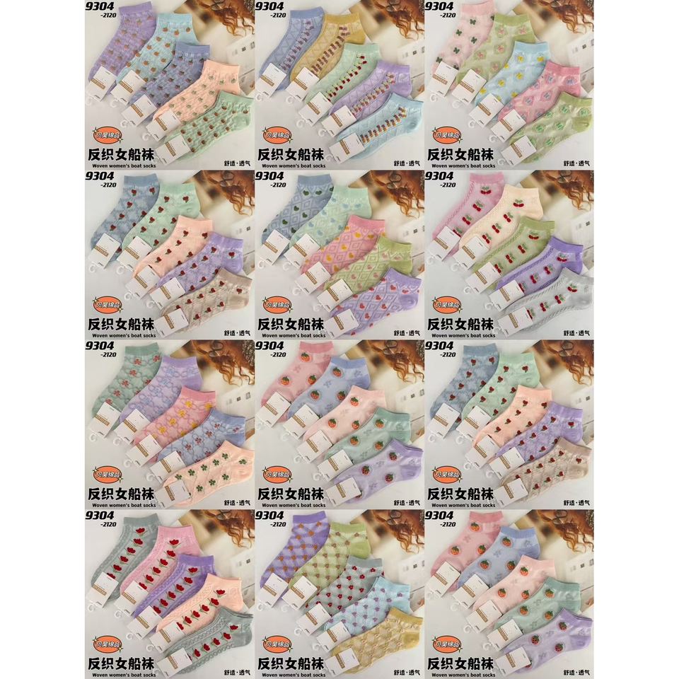 Women's Floral Printed Ankle-Length Socks Breathable Nylon Spandex Knitted Mesh Technique for Spring Summer Individual Bag