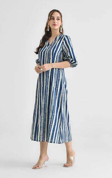 เดรสยาวผ้าคอตตอนพิมพ์ลายดอกไม้สำหรับผู้หญิงชุดเดรสคอวีทรงตรงสไตล์ลำลองไม่เหมือนใคร