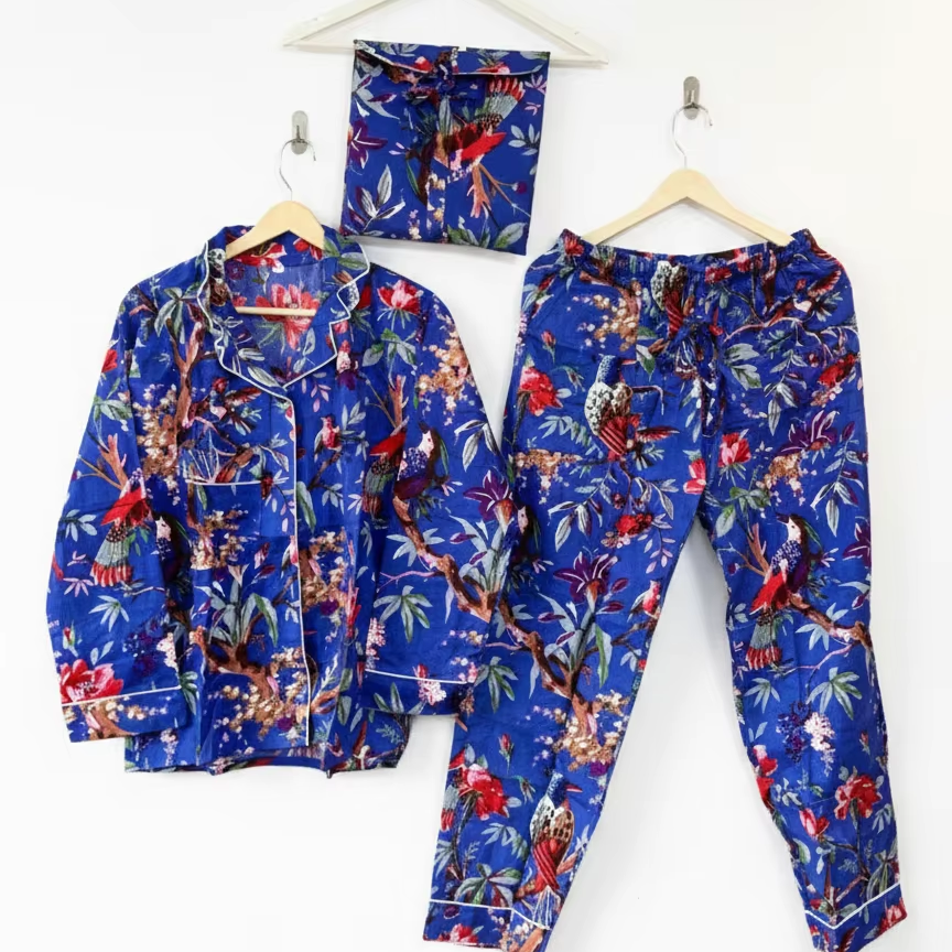 ชุดนอนผ้าฝ้ายพิมพ์ลายดอกไม้ลายทางแนวตั้งสำหรับผู้หญิง ทำมือ 100% แห้งเร็ว ใส่สบาย ดีไซน์ทันสมัย เหมาะสำหรับฤดูใบไม้ผลิและฤดูร้อน