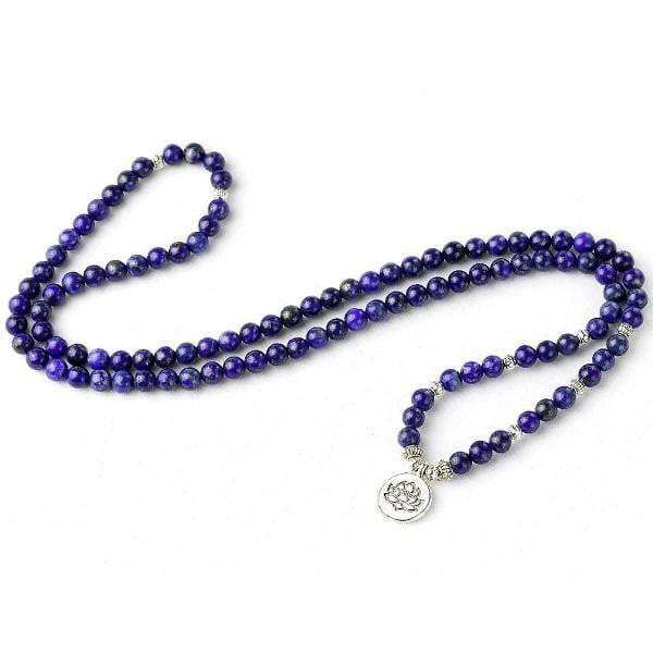 Women's Flower-Shaped Lapis Lazuli Alloy Beaded Necklace with Stone Pendant Buddhist Romantic Style for Party Occasions