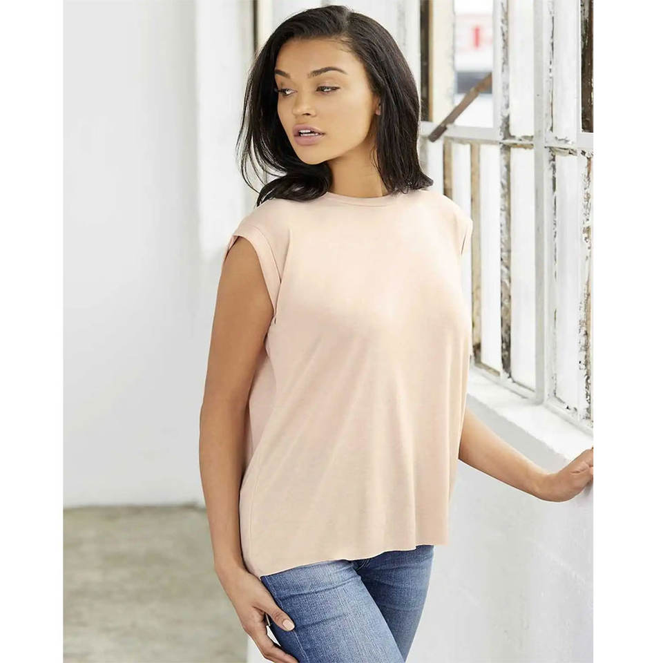ชื่อผลิตภัณฑ์:เสื้อยืดลายกล้ามเนื้อพลิ้วไหวของผู้หญิงพร้อมปลอกแขนม้วน