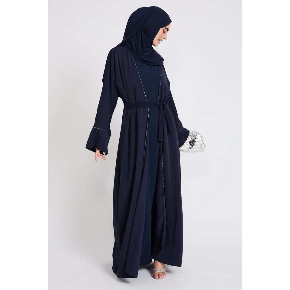 Matching hijab,belt,capped sleeve inner slip dress,outer abayaIncludes
