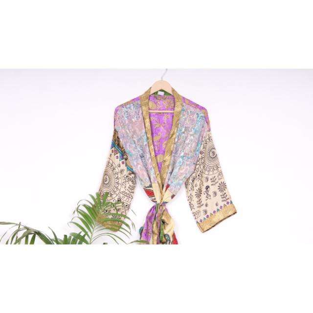 ชุดกิโมโนผ้าไหมสำหรับผู้หญิงชุดนอนส่าหรีหลายสีสำหรับฤดูร้อน