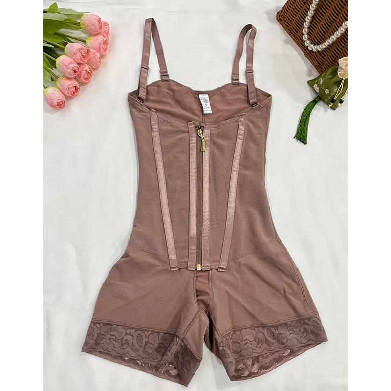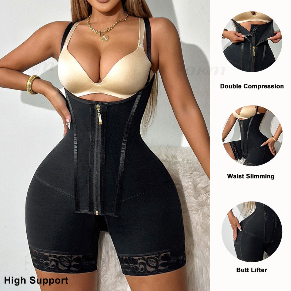 ชุดกระชับสัดส่วนผู้หญิงแบบเต็มตัว ซิปและตะขอเกี่ยว ช่วยกระชับเอว พร้อมชั้นในสองชั้น ชุดกระชับสัดส่วนแบบชิ้นเดียวสำหรับออกกำลังกาย