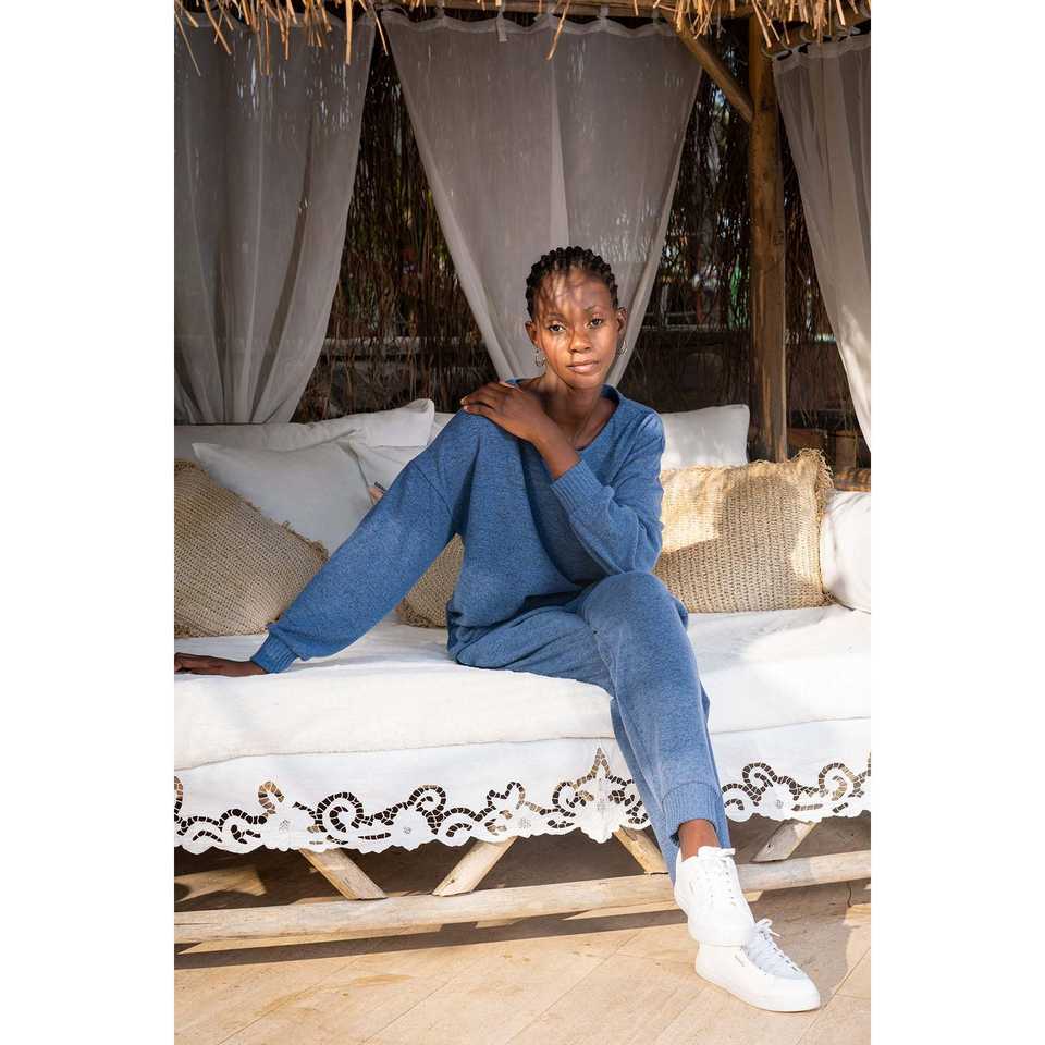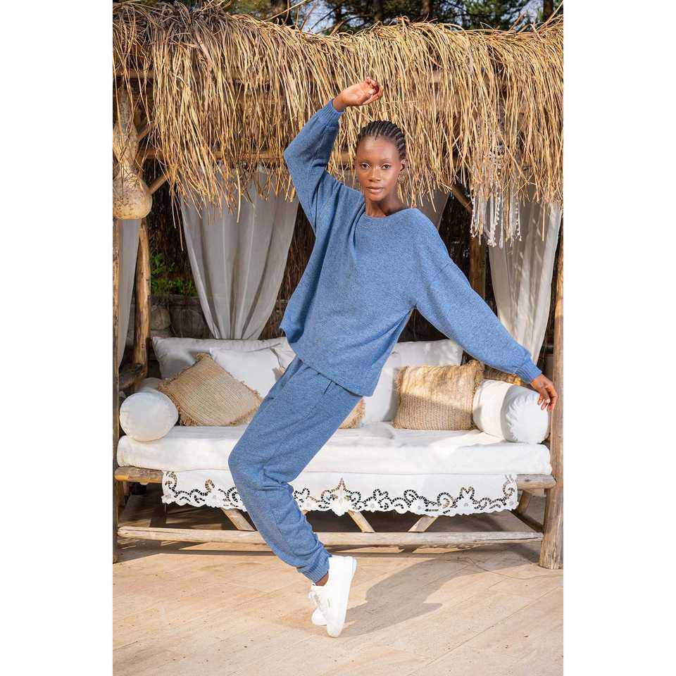 ชุดเดรสสตรีแบบเต็มตัวสำหรับสตรีชุดกางเกงเอวลอยแบบมีกระเป๋าแขนยาวคอทรงเรือขนาด XXL ดีไซน์ทันสมัย