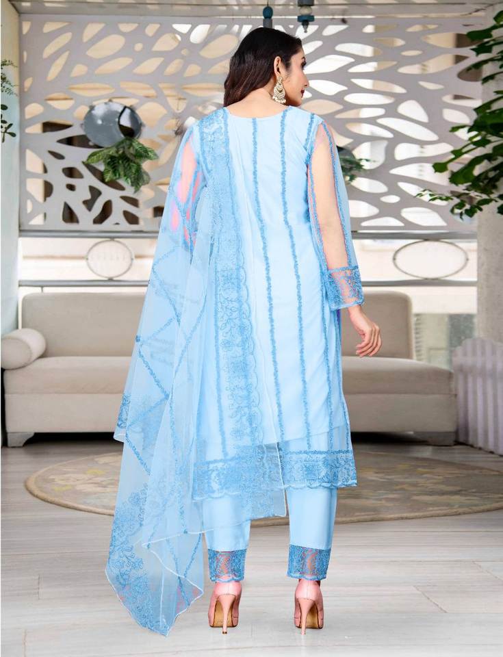 ชุดคุรตะแขนยาวสำหรับผู้หญิงพร้อมงานปัก | ประกอบด้วยกางเกงผ้าไหมผสม และผ้าคลุมไหล่ผ้าตาข่าย | ชุดประจำชาติสำหรับเทศกาล