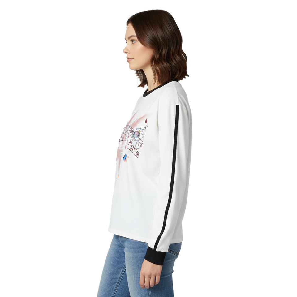 เสื้อยืดแขนยาวผู้หญิง ผ้าฝ้ายเมอร์เซอไรซ์เนื้อนุ่ม ระบายอากาศได้ดี พิมพ์ลายดิจิทัล สวมใส่สบายทันสมัย ป้องกันรอยยับ แห้งเร็ว