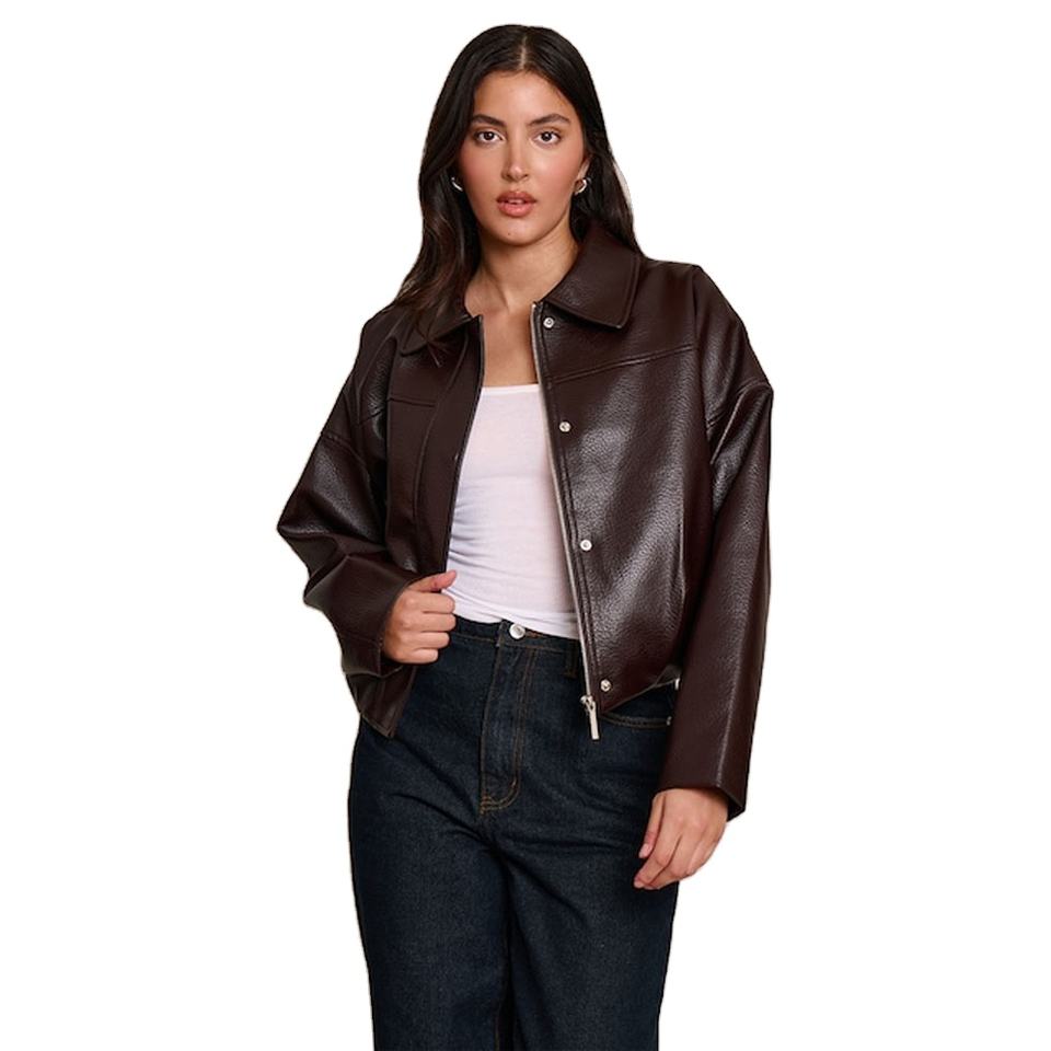 เสื้อแจ็คเก็ตบอมเบอร์หนังแท้ถักสำหรับผู้หญิง สวมใส่สบายในฤดูหนาว กันน้ำ ระบายอากาศได้ดี เป็นมิตรกับสิ่งแวดล้อม แบบสั้น