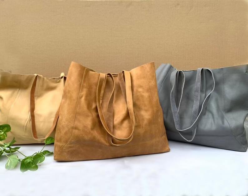 Women's Genuine Leather Handmade Tote Bag with Zipper Closure Daily Use Customizable Color & Logo LTB-0278
