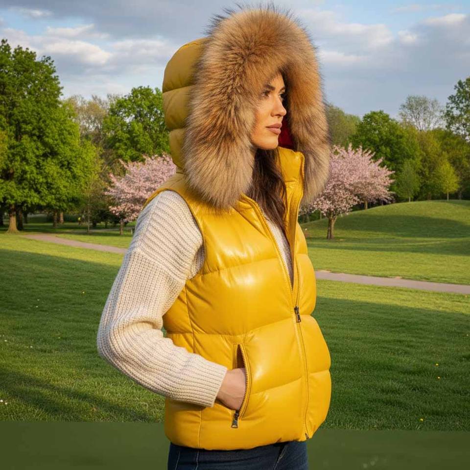 เสื้อกั๊กหนังแท้บุขนสัตว์สำหรับผู้หญิง มีฮู้ด ขนฟ็อกซ์ เสื้อกั๊กหนังสำหรับผู้หญิง เสื้อกั๊กสไตล์ไบค์เกอร์สำหรับสาวๆ เสื้อกั๊กบอมเบอร์บุขนสัตว์