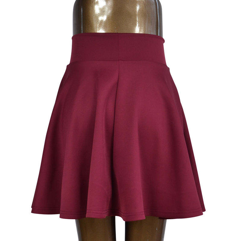 กระโปรงสเกตเตอร์ยาวถึงเข่าทรงบานอเนกประสงค์ผ้ายืดสำหรับผู้หญิงรุ่นพื้นฐาน