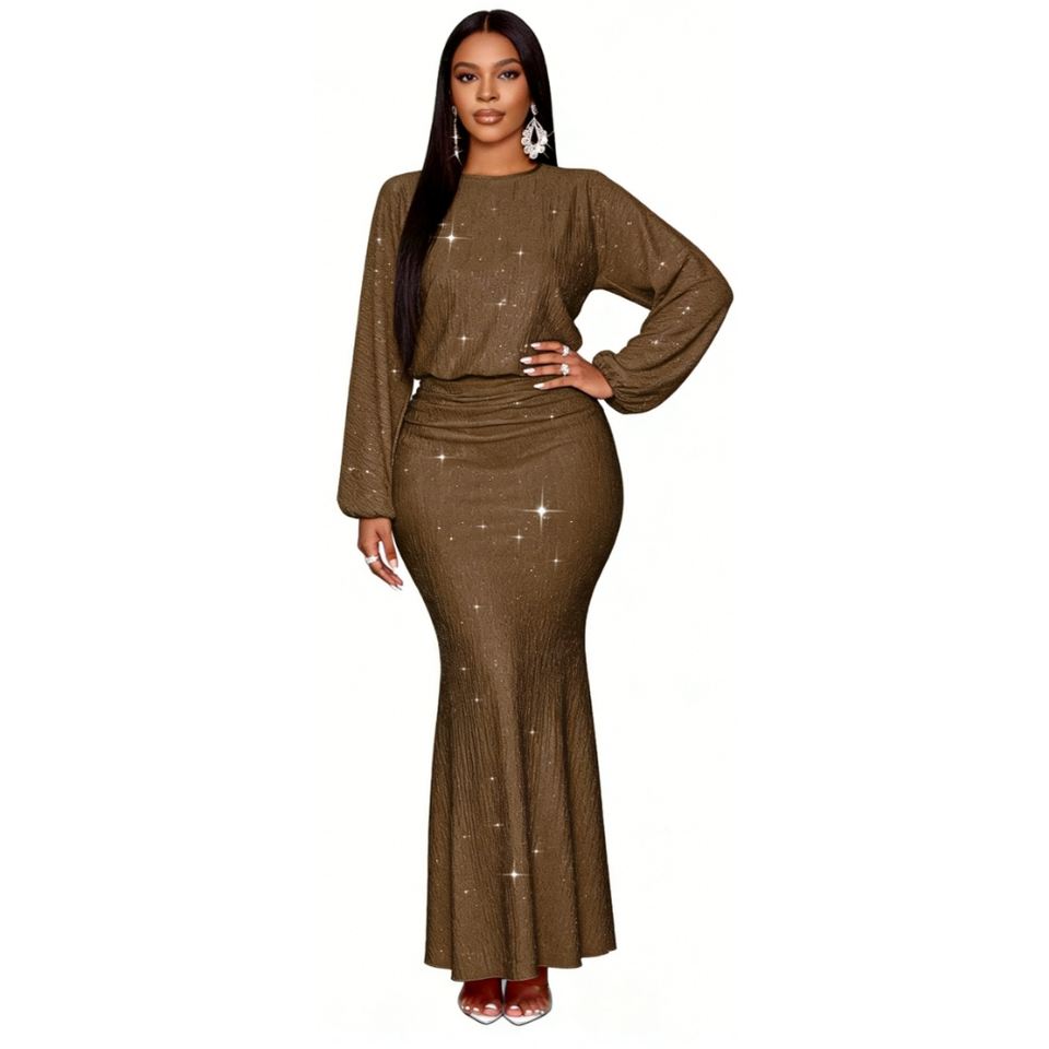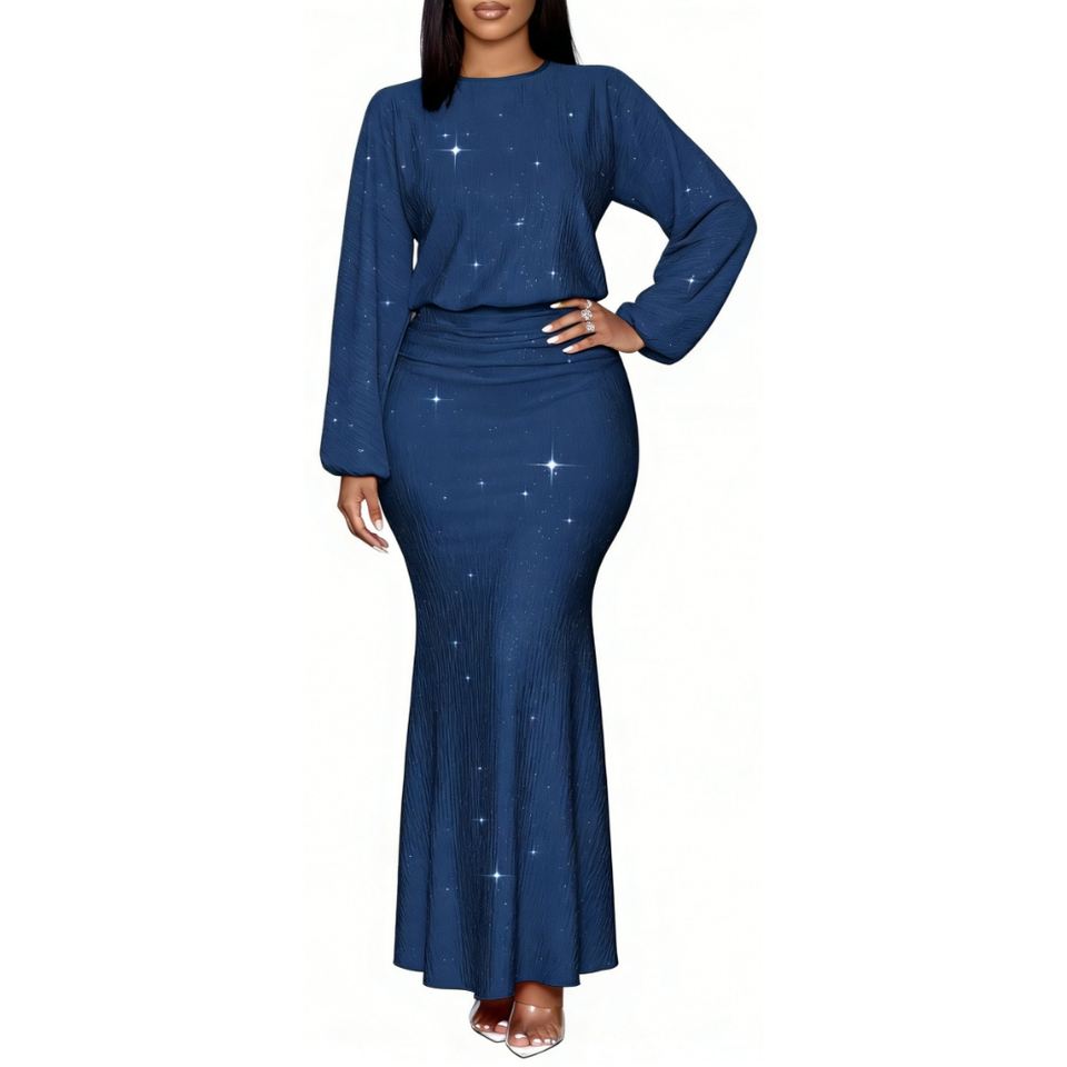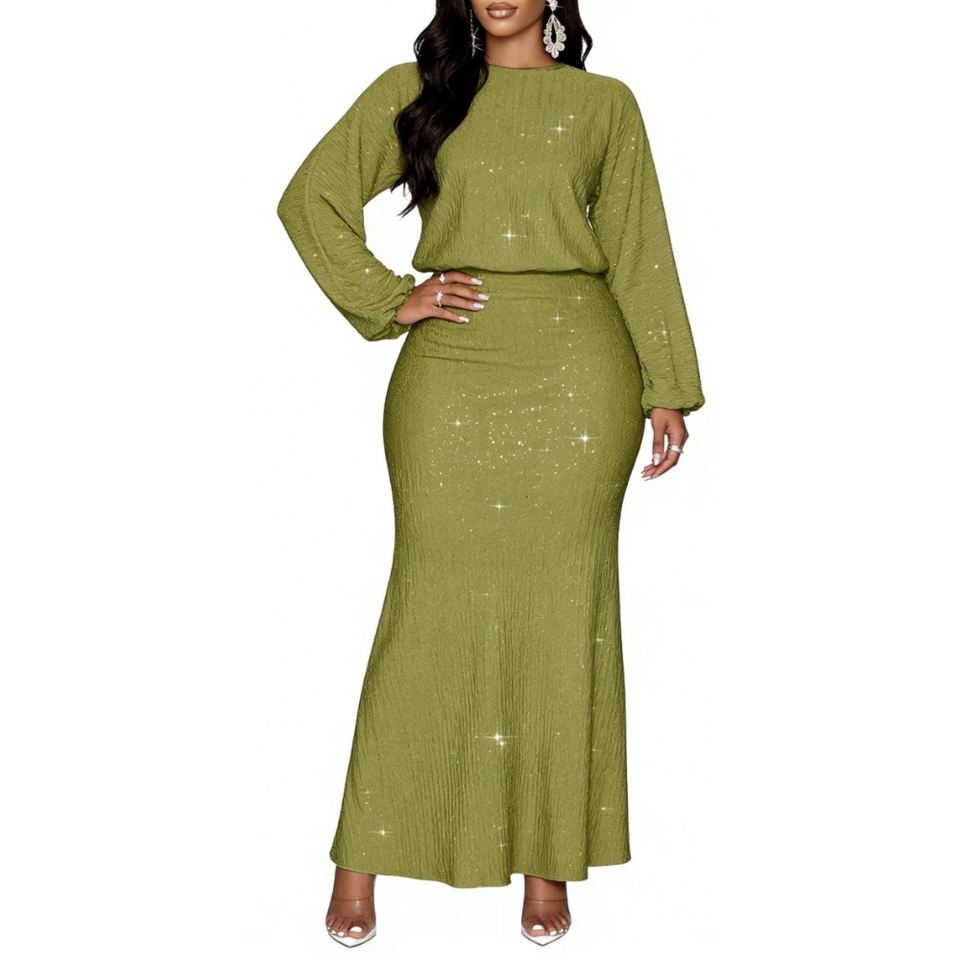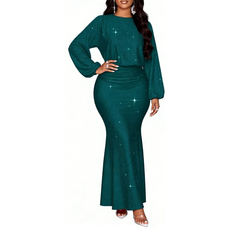 ชุดเดรสแม็กซี่ผ้ารุ้งประดับกลิตเตอร์สำหรับผู้หญิง - ชุดเดรสยาวแขนยาวสำหรับงานทางการ แฟชั่น