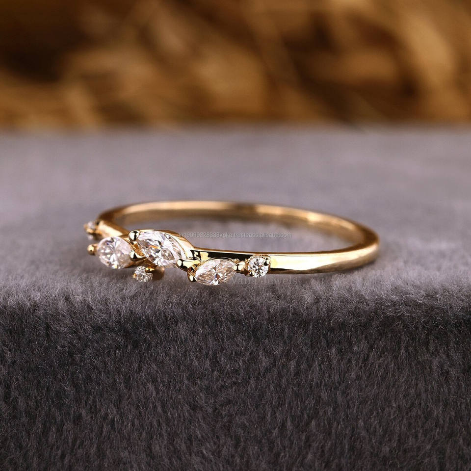 แหวนเพชรสีทองสำหรับผู้หญิงครึ่งแบบมินิมอลเล็กๆน้อยๆรูปทรงมาควิซในห้องแล็บปลูกดอกไม้เถาวัลย์ดอกไม้แบบซ้อนกัน