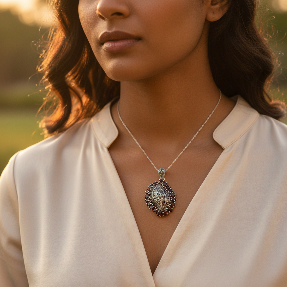 Women's Gold Pendant with Garnet Marcasite Ruby Amethyst Emerald Topaz Crystal Charming Jewelry Gift