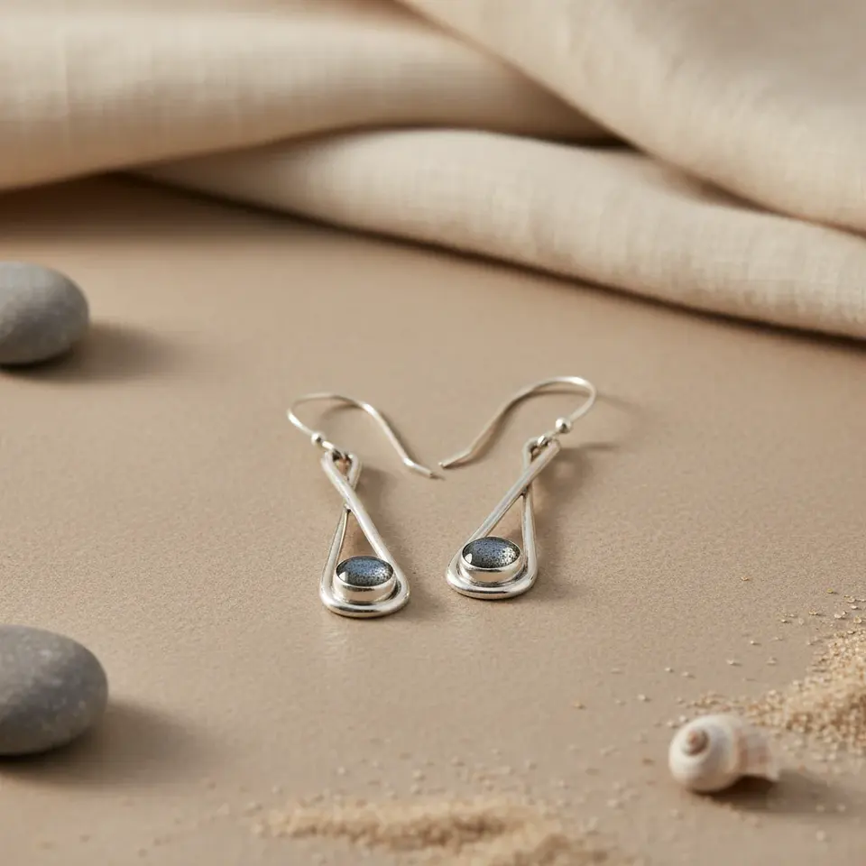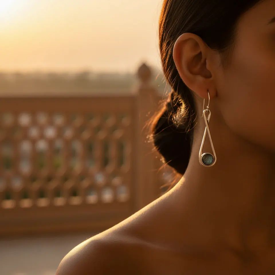 ต่างหูทรงหยดน้ำประดับลาบราโดไรต์ ชุบทองบนเงินแท้ 925 สำหรับงานแต่งงานและงานปาร์ตี้