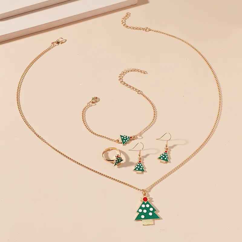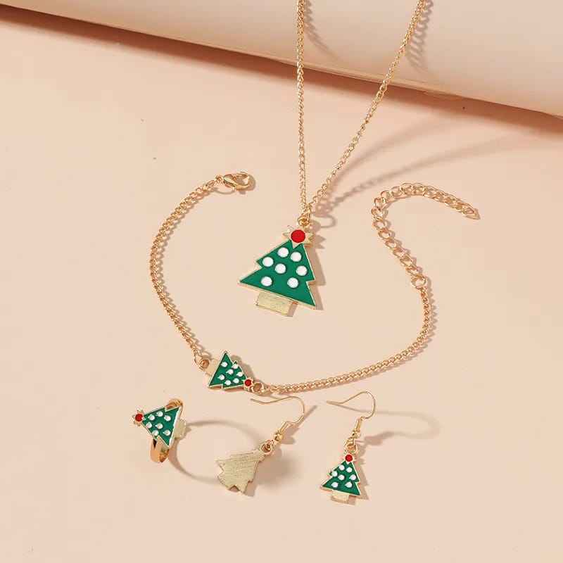 ชุดเครื่องประดับทองชุบทองแดงลายต้นคริสต์มาสสำหรับผู้หญิง 4 ชิ้น สำหรับงานเทศกาล งานแต่งงาน และงานหมั้น