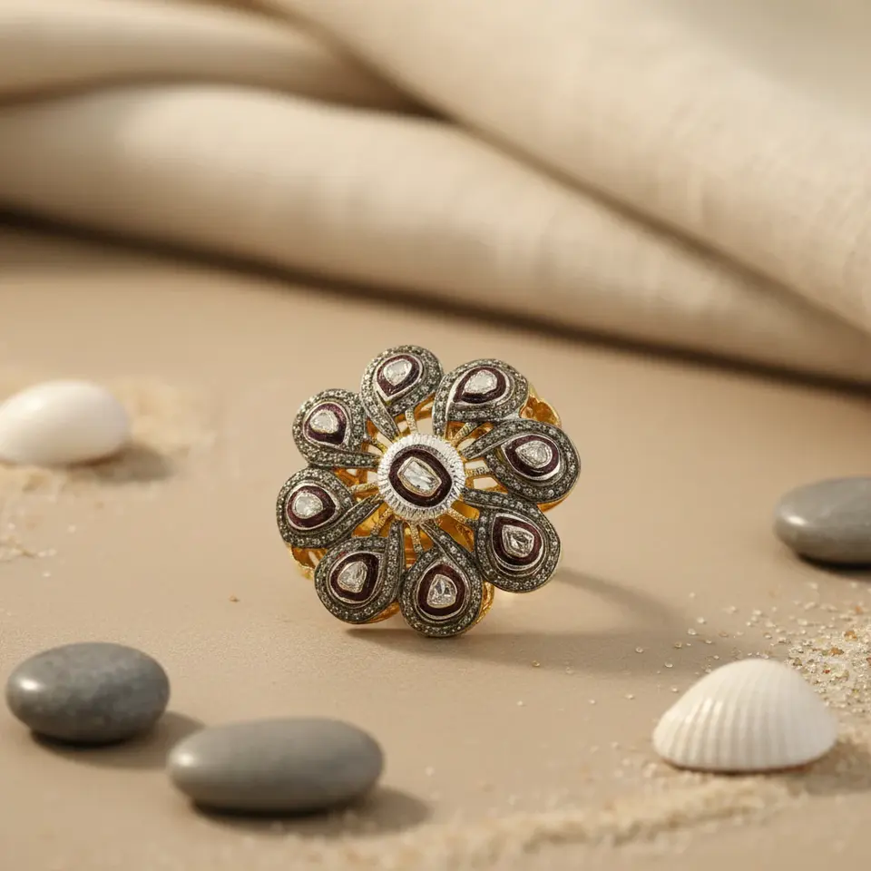 แหวนดอกไม้ประดับเพชรชุบทองสำหรับผู้หญิง ไอเดียของขวัญ
