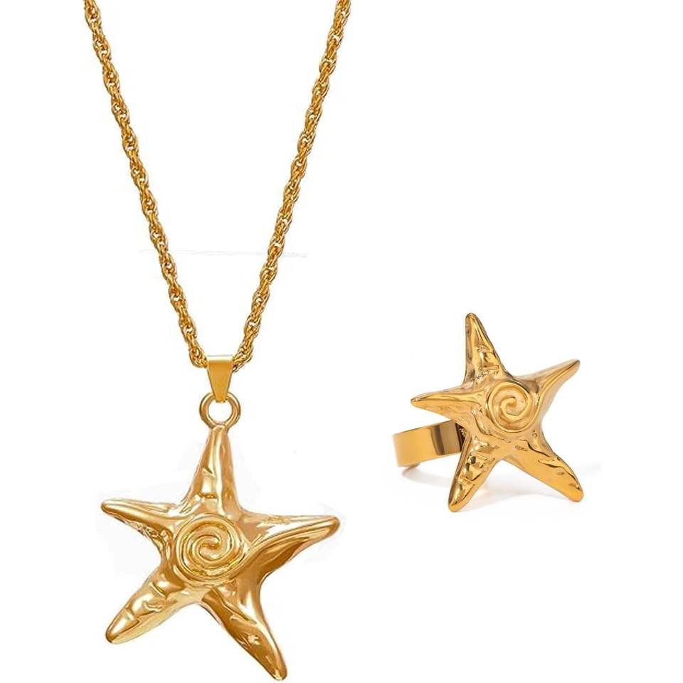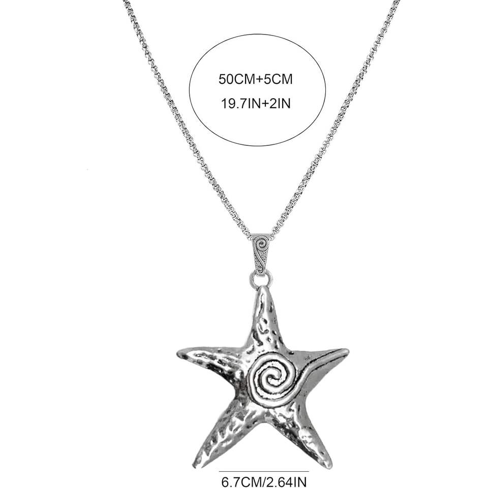 Hijunmi Women's Starfish Necklace Gold Plated Alloy Pendant Beach Ocean Summer Charm Jewelry Trendy Nautical Style