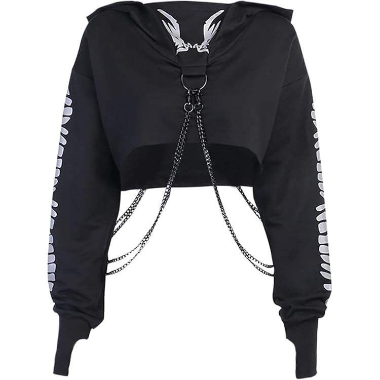 เสื้อสเวตเตอร์สวมหัวแบบกอธิคของผู้หญิงแขนปีกค้างคาวเสื้อเกาะอกเสื้อครอปมีฮู้ดผ้าสักหลาดปักเลื่อมสั้นฤดูหนาว