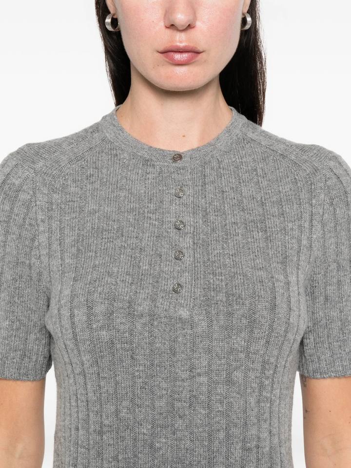 เสื้อยืดแขนยาวลายทางสีเทาแต่งมุก คอปกพับได้ ผ้าถัก ระบายอากาศดี เหมาะสำหรับฤดูร้อน สไตล์ลำลอง สำหรับผู้หญิง