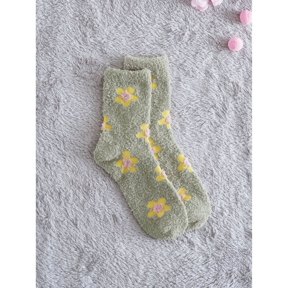 Women's Green Flower Sleep Socks