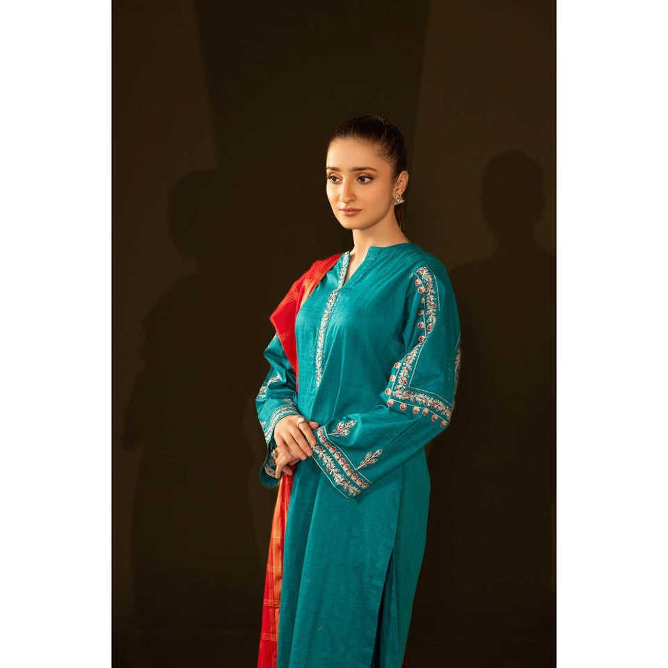 ชุดสูทปักลายแจ็คการ์ดสีเขียวสำหรับผู้หญิง - เสื้อและผ้าคลุมไหล่