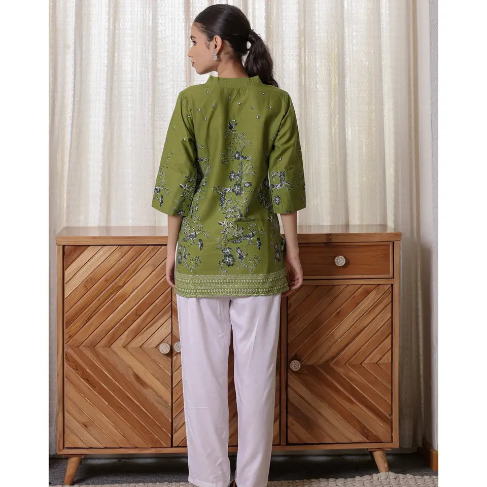 ชุดคุर्ตาสั้นสีเขียวสำหรับผู้หญิง