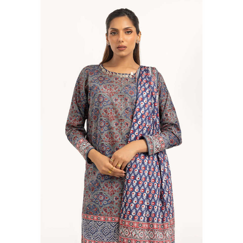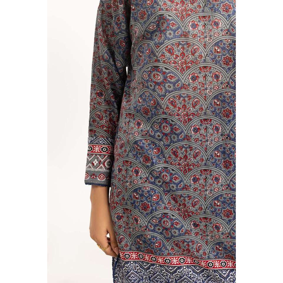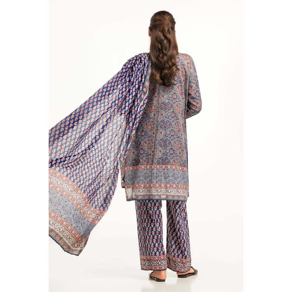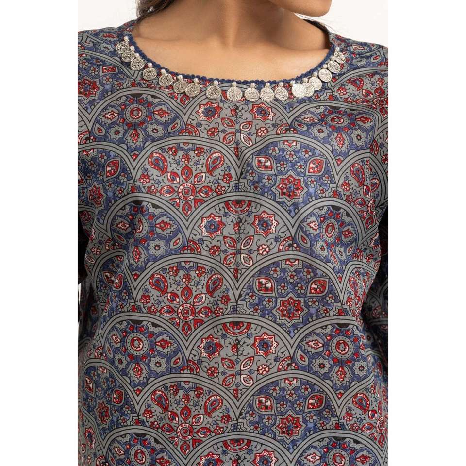 ชุดสูทผ้าลอนพิมพ์ลายสีเทาสำหรับผู้หญิง 3 ชิ้น