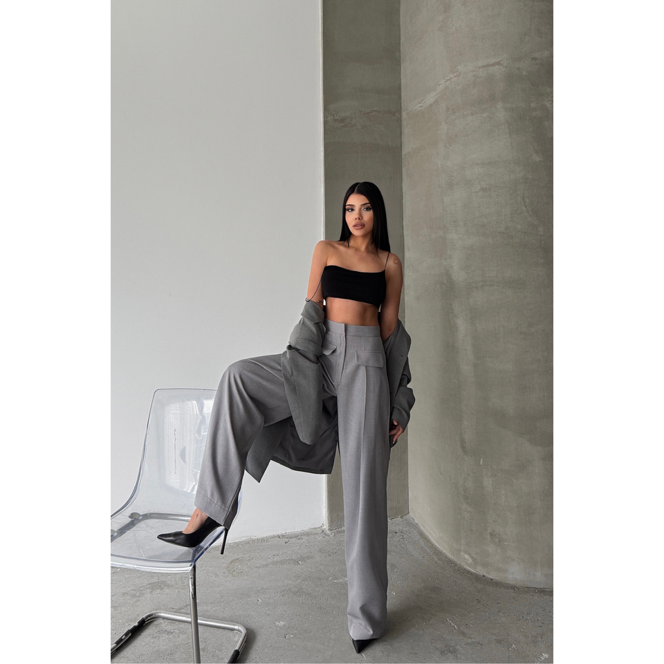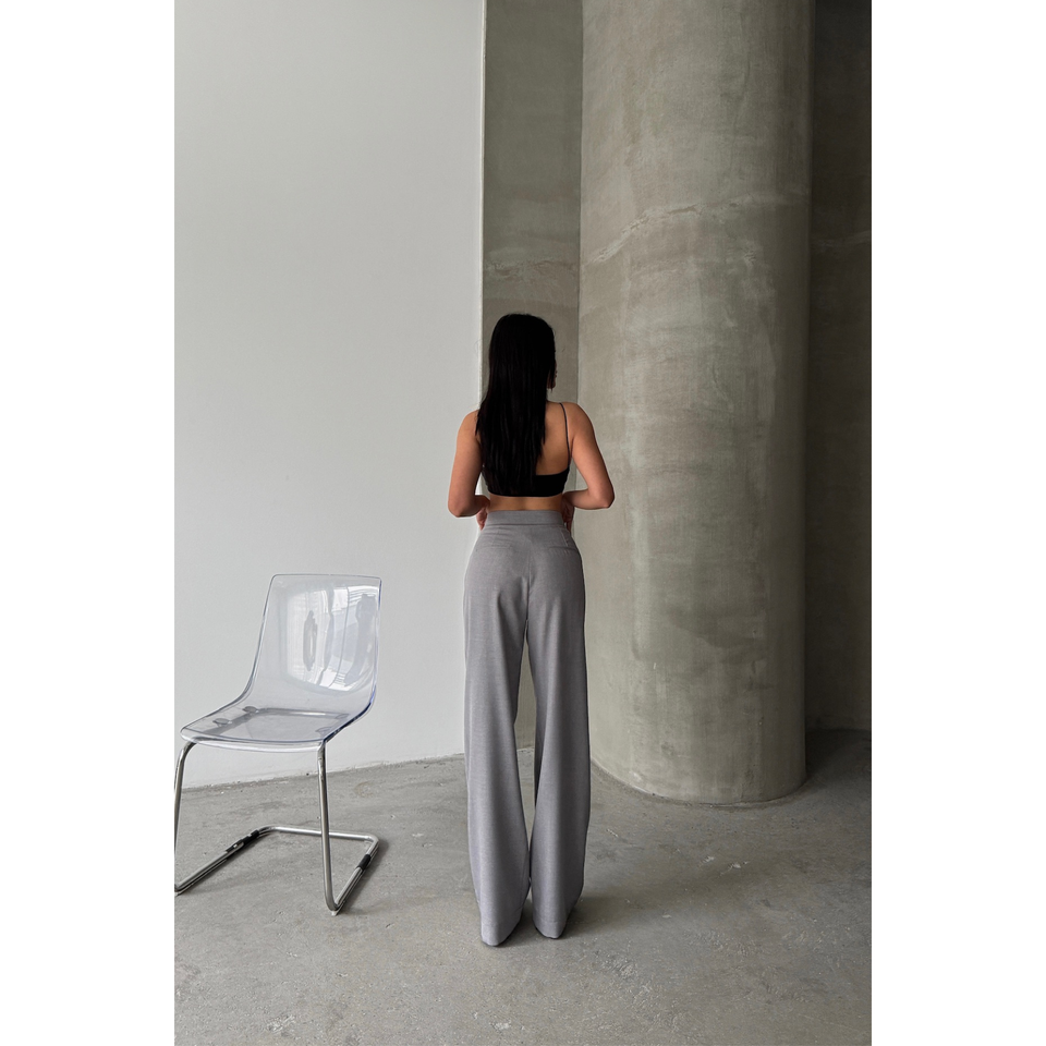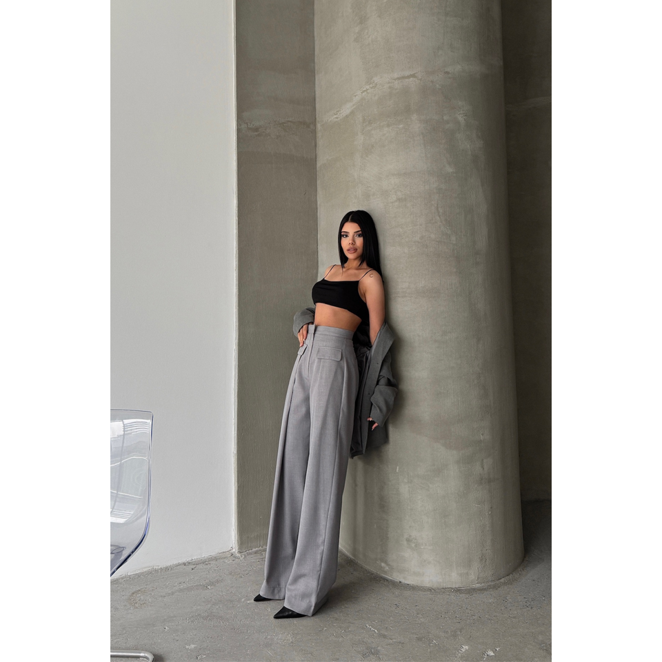 Women's Grey Closed Wide Pleated Pocket Flap Detail Trousers XL Size Elastic Waist Closure Breathable Comfortable