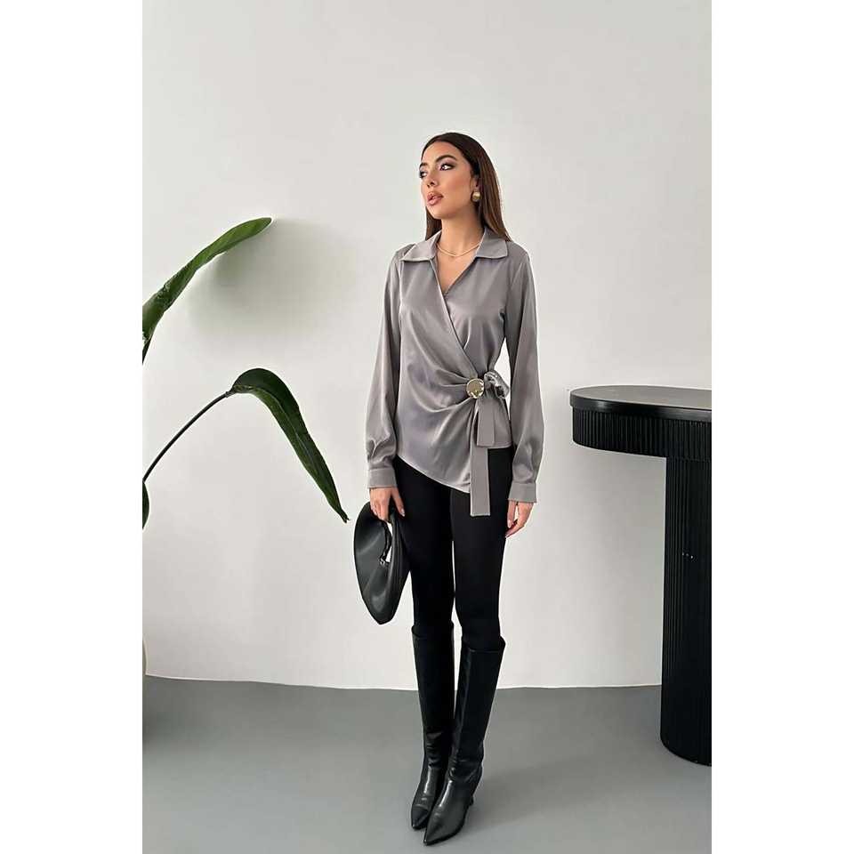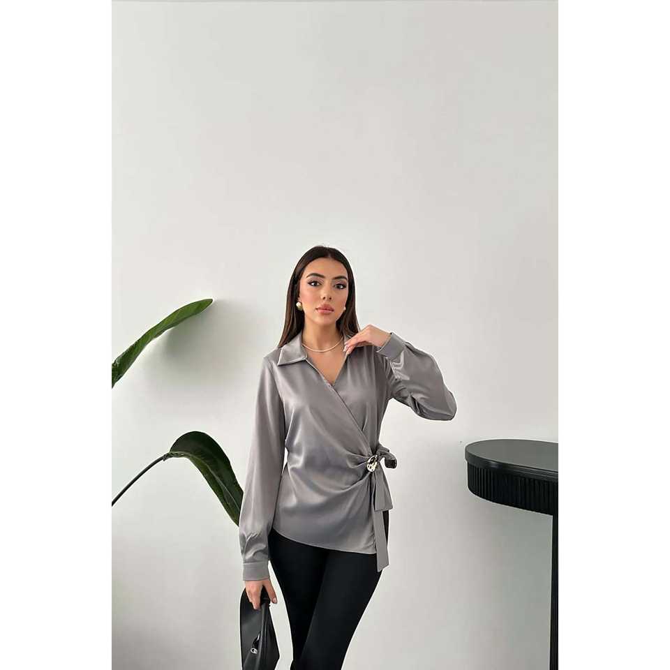 เสื้อสตรีผ้าซาตินสีเทาติดกระดุม - เสื้อและเชิ้ตขายส่ง