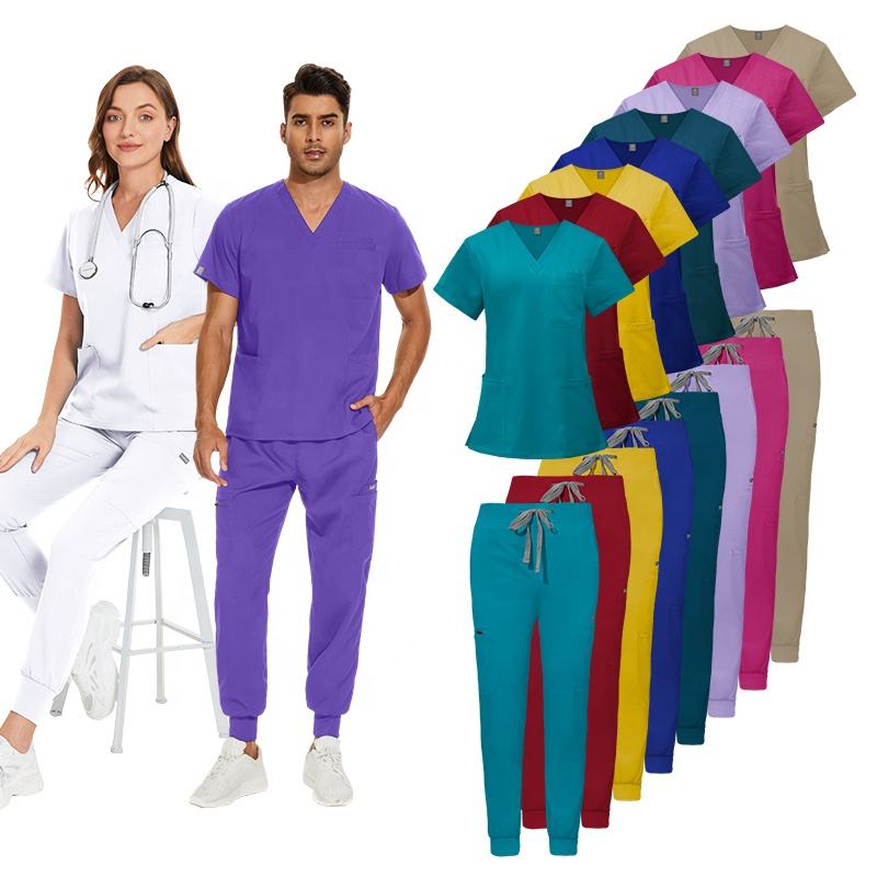 ชุดยูนิฟอร์มโรงพยาบาลสีเทาสำหรับผู้หญิง ชุดพยาบาลและชุดทำงานสำหรับคุณแม่ตั้งครรภ์ ผลิตจากผ้าสแปนเด็กซ์
