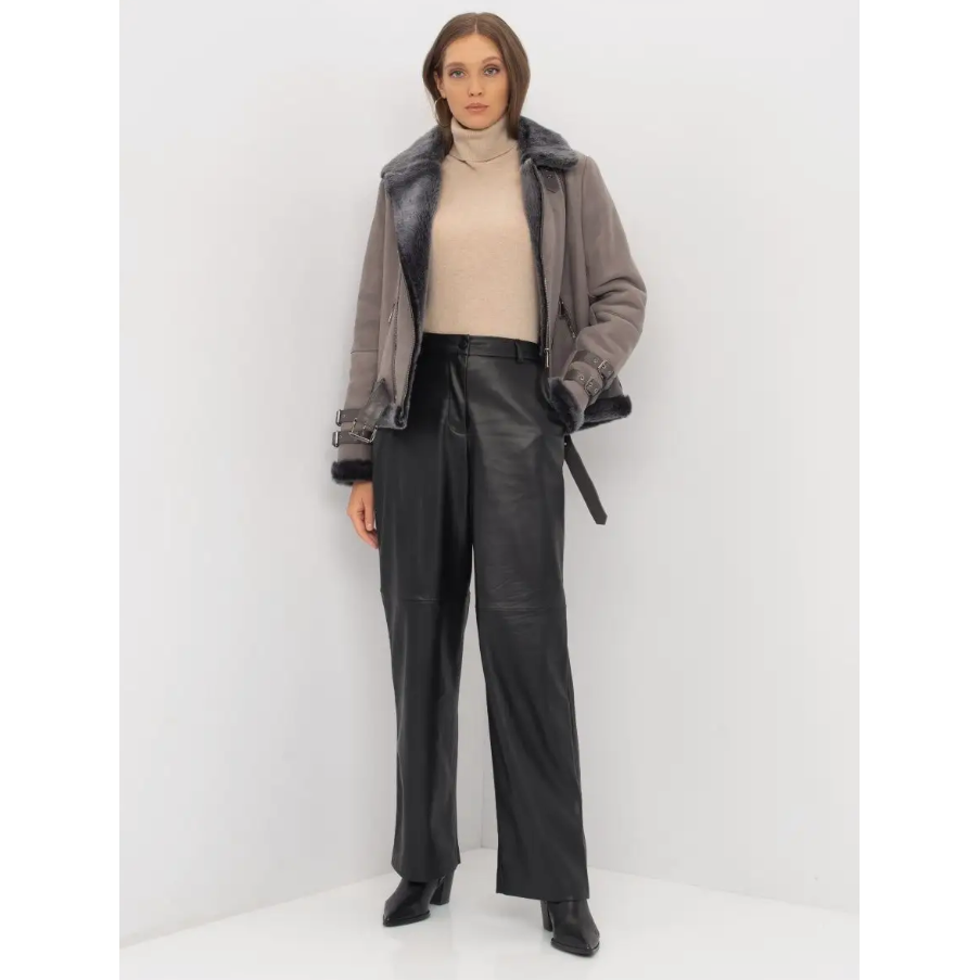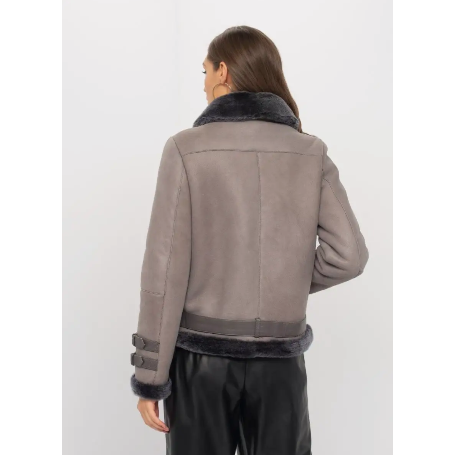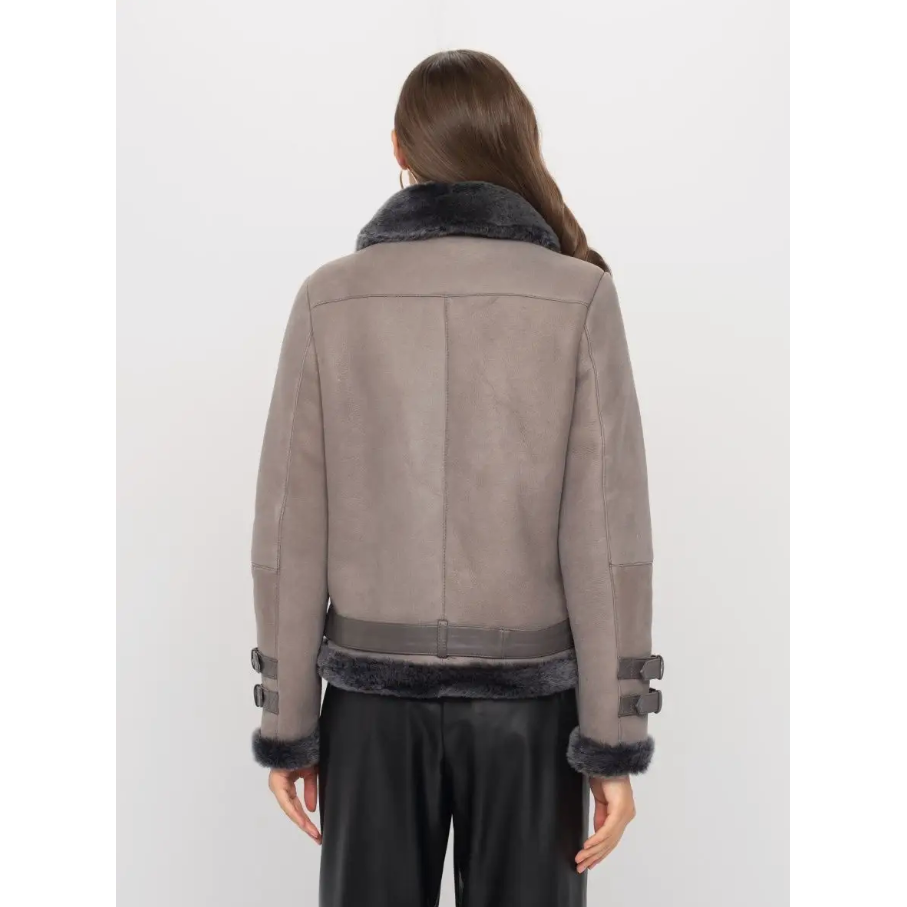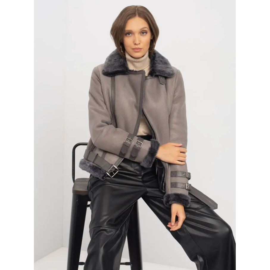 เสื้อโค้ทสำหรับขี่มอเตอร์ไซค์สีเทาขนแกะแท้ปก100% หรูหรามีซิปด้านหน้าปรับได้แบบอสมมาตร