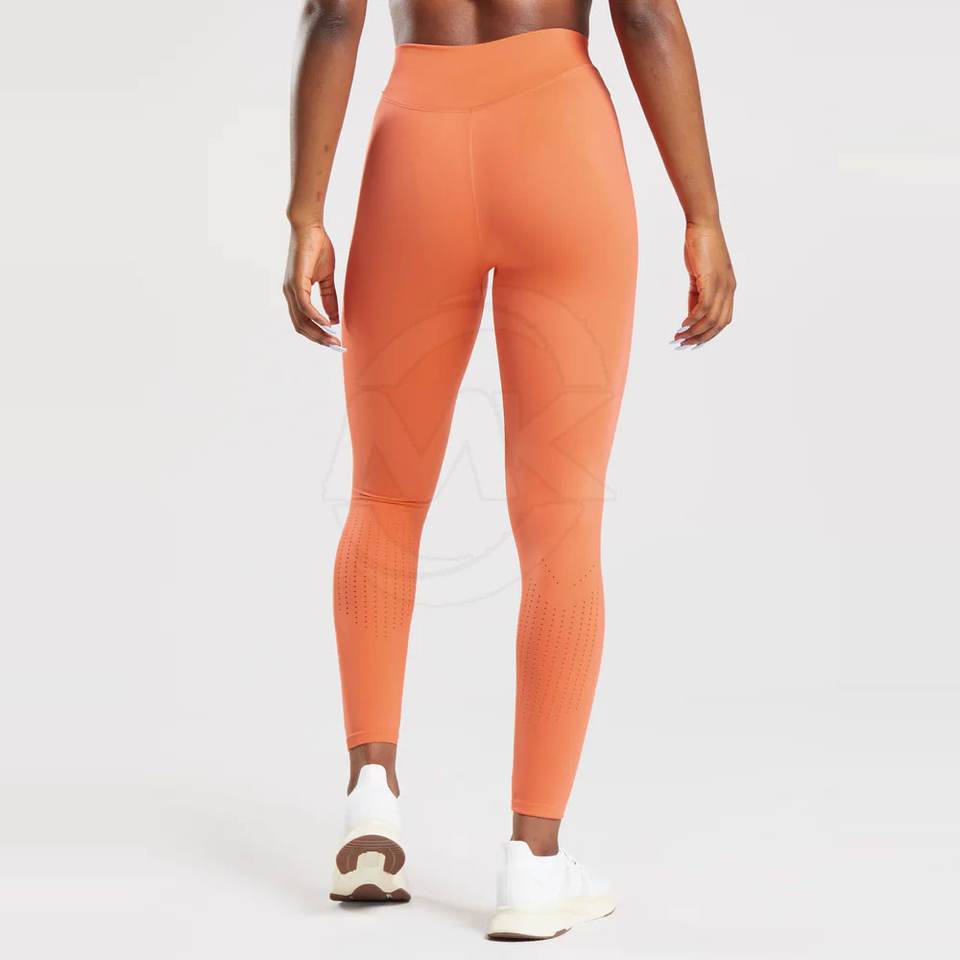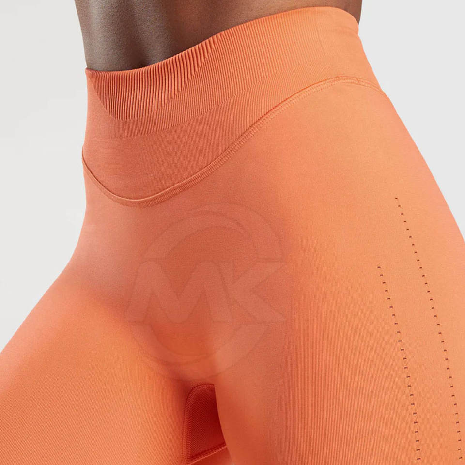 ชุดออกกำลังกายของผู้หญิงเลกกิ้งออกกำลังกายไร้รอยต่อมีโลโก้เอวกลาง