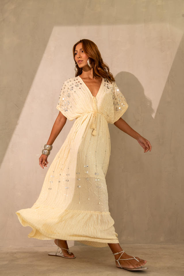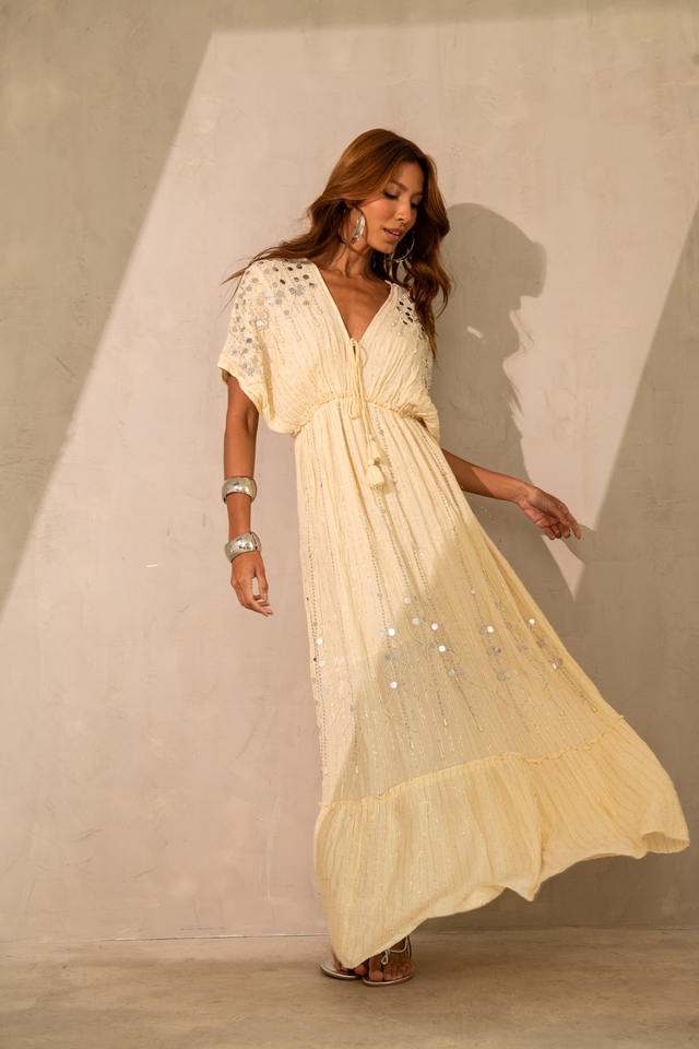 ชุดแมกซี่เดรสยาวครึ่งแขนสำหรับผู้หญิงชุดเดรสผ้าซาตินคอวีสำหรับงานแต่ง