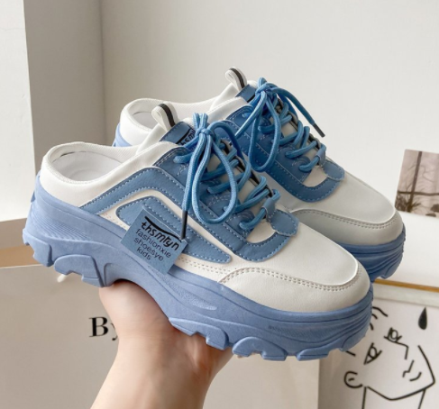 รองเท้าสลิปเปอร์เปิดส้นครึ่งส้นสำหรับผู้หญิงพื้นรองเท้าหนาทำจากผ้าแคนวาสสำหรับใส่ในฤดูร้อนรองเท้า2024