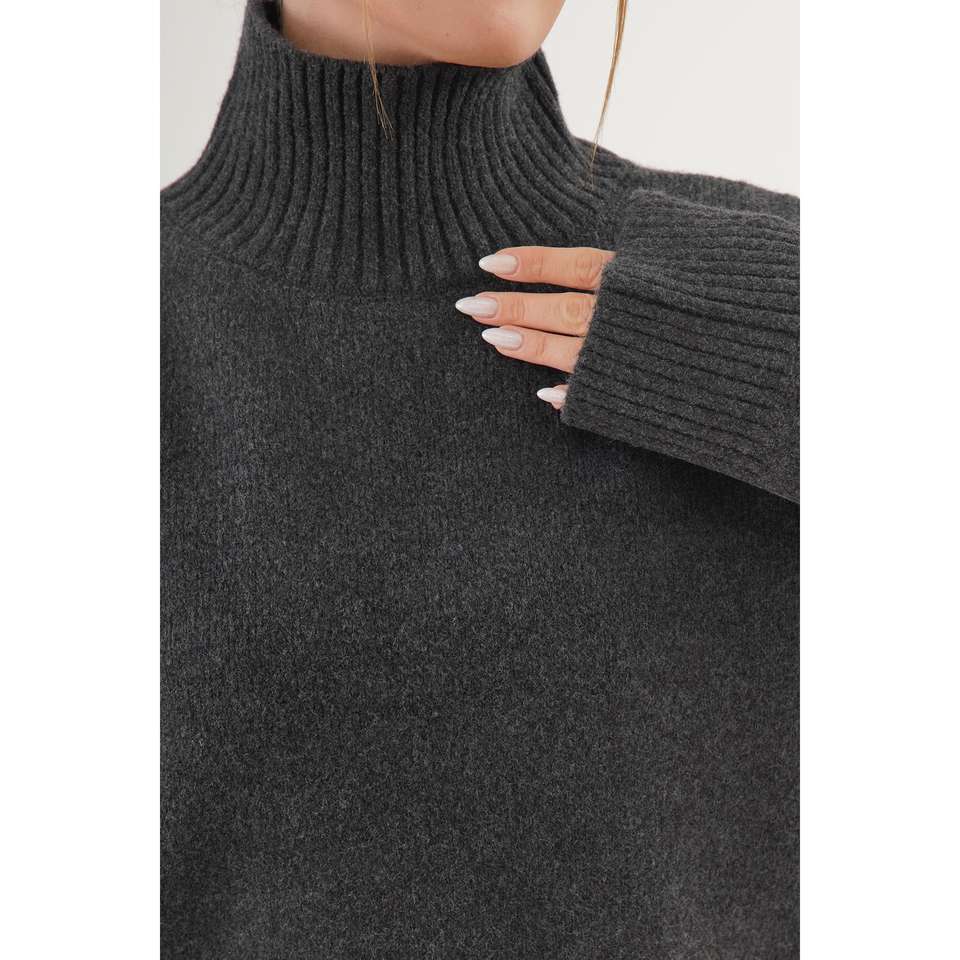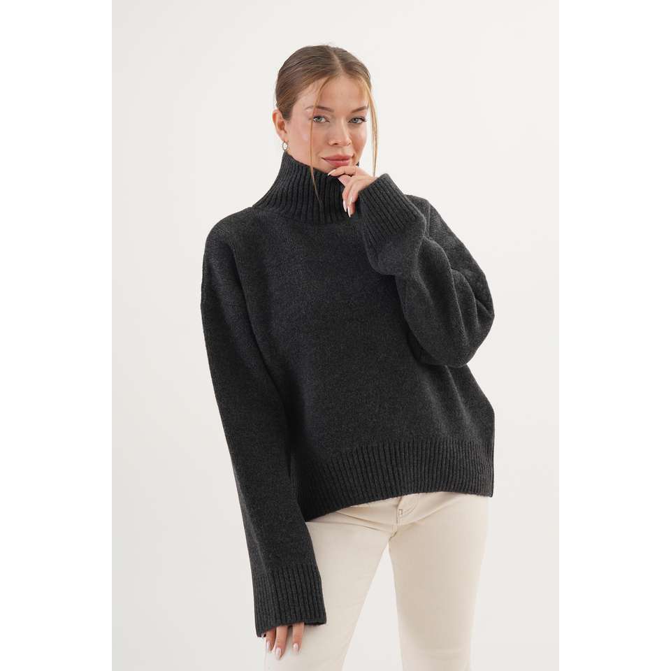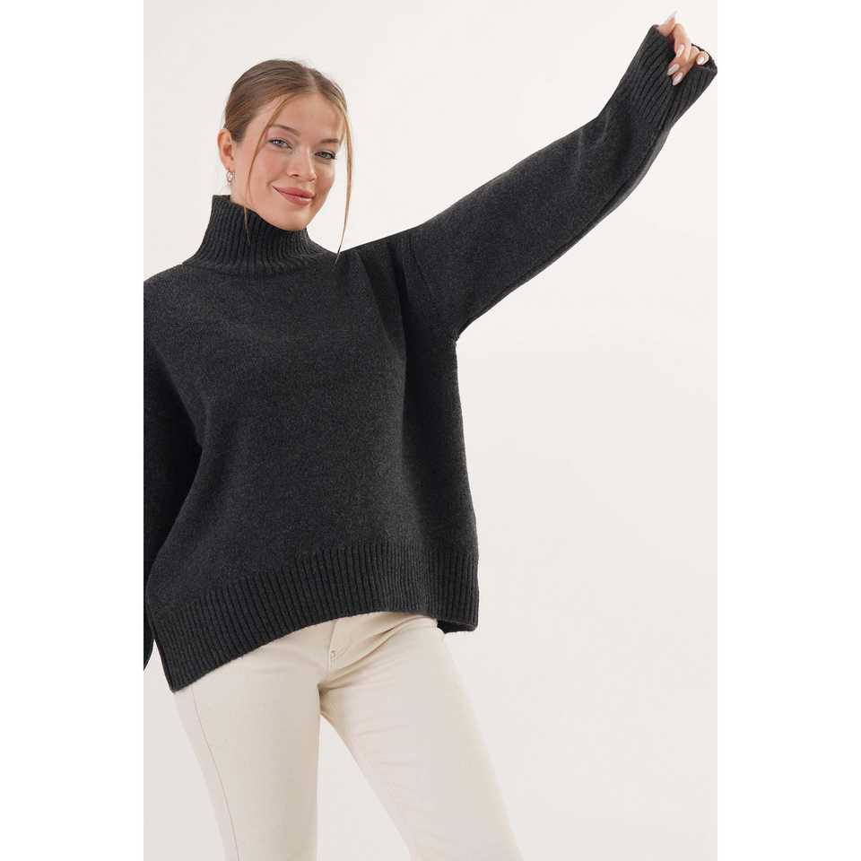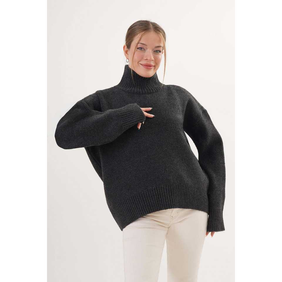 ชุดเสื้อสเวตเตอร์ถักคอเต่าครึ่งตัวสีแอนทราไซต์สำหรับผู้หญิง เนื้อหนาและอบอุ่น