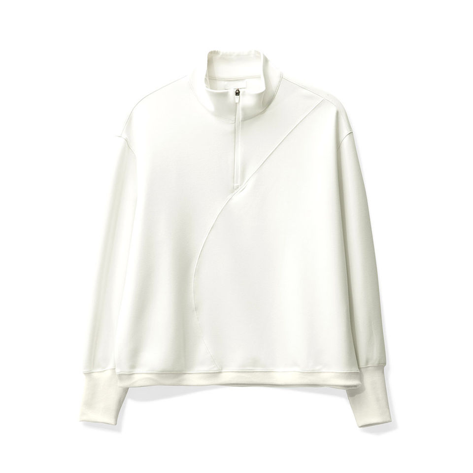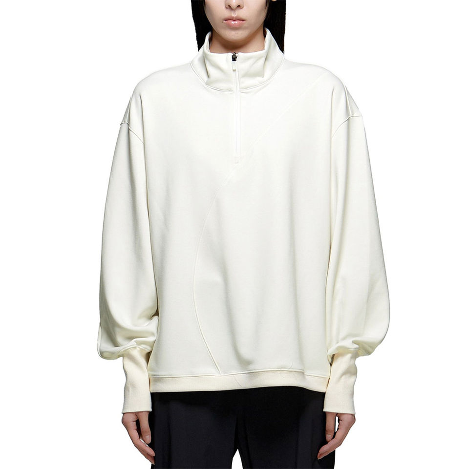 เสื้อสเวตเชิ้ตผู้หญิงแบบซิปครึ่งตัวสำหรับฤดูหนาว ตกแต่งด้วยเลื่อม ปักโลโก้ตามสั่ง คอตั้ง ผ้าต่อสีพื้น ด้านหน้าผ้าฝ้าย 100%