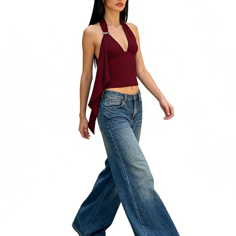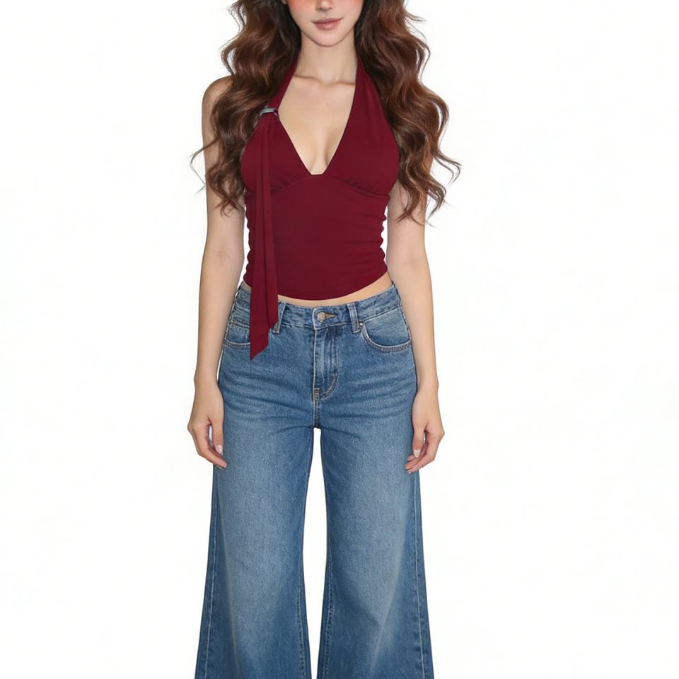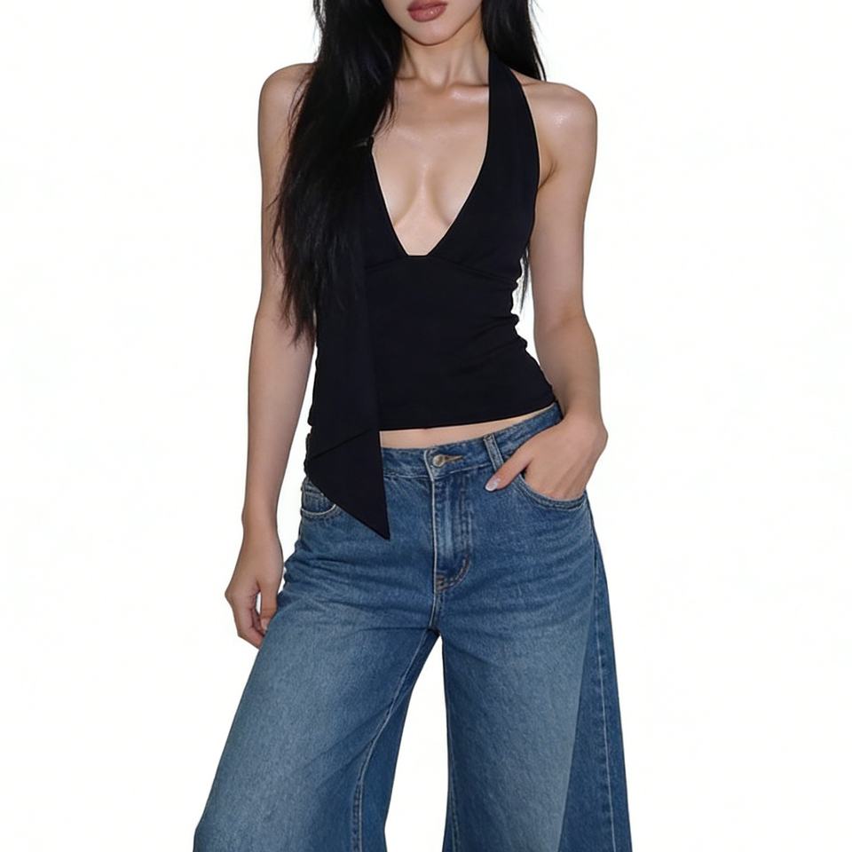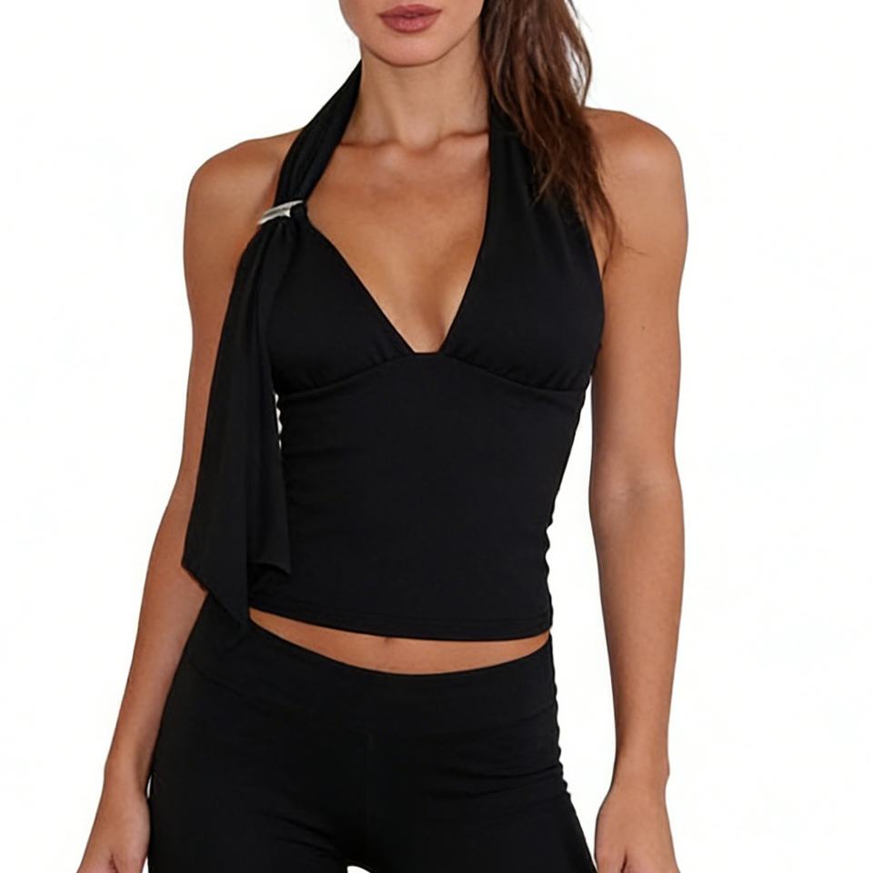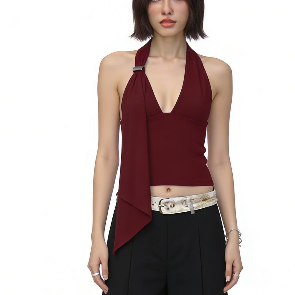 เสื้อกั๊กเอวลอยคอวีลึกแบบมีสายรัดแขนกุดทรงสลิมฟิตเสื้อกั๊กแฟชั่น