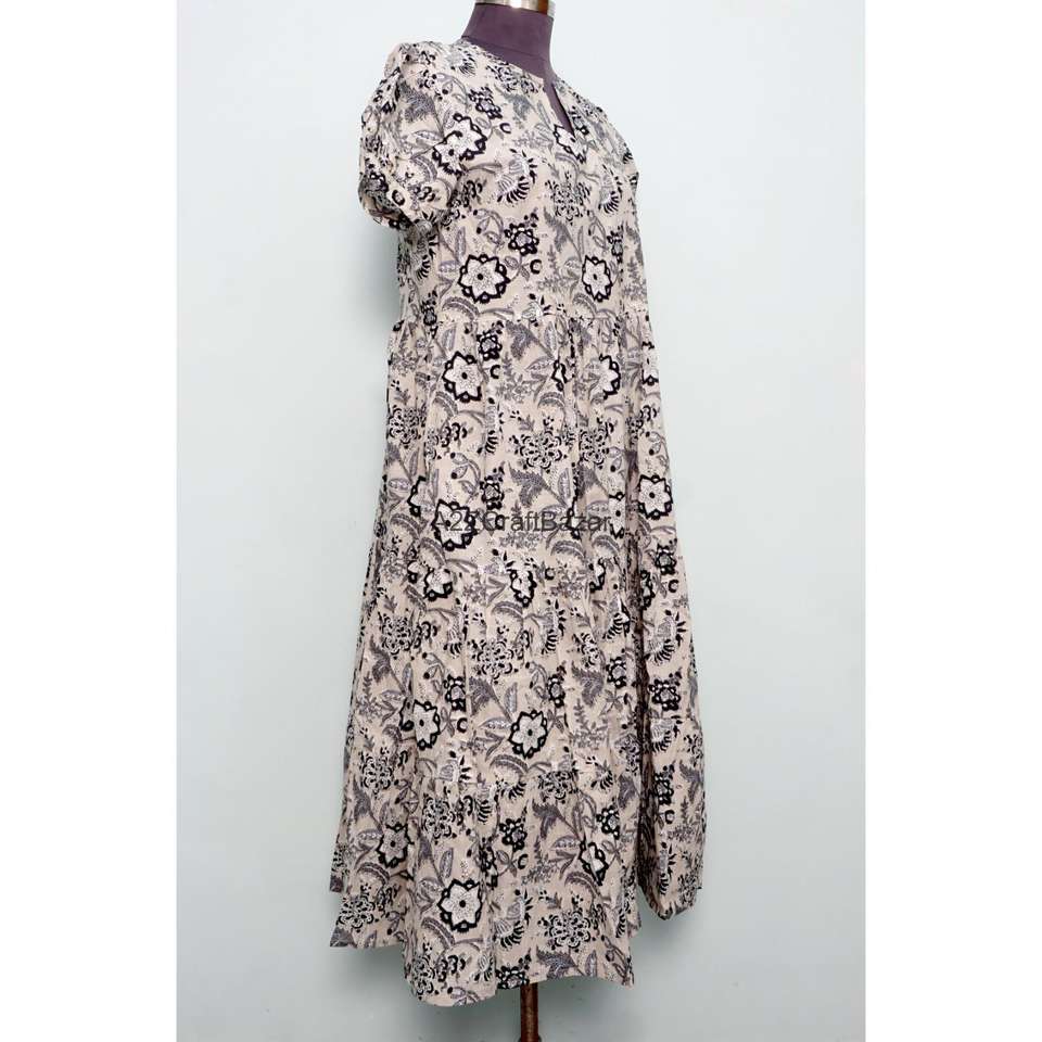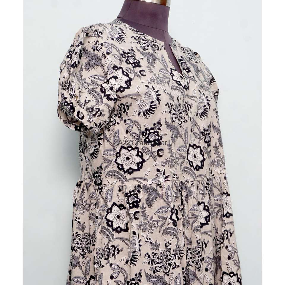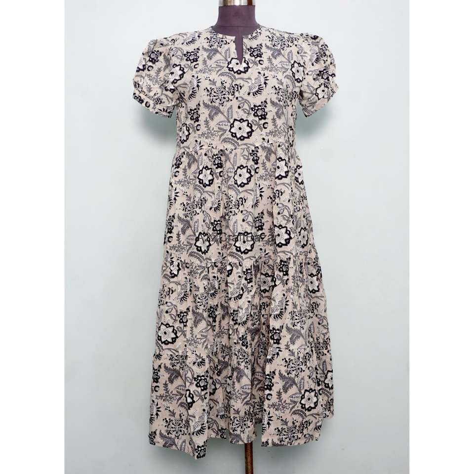 ชุดเดรสผ้าฝ้ายพิมพ์ลายด้วยมือสำหรับผู้หญิง ลายดอกไม้สวยงาม ดีไซน์โดดเด่น ใส่สบาย เหมาะสำหรับโอกาสพิเศษ